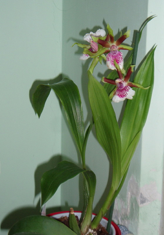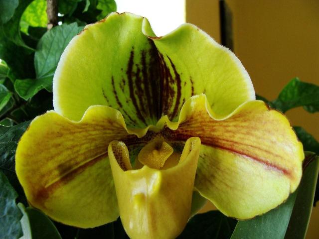 Tak som dnes nafotila hybridné Paphiopedilum, ktoré som si priniesla z výstavy vo Viedni. Bolo označené ako Paphiopedilum Anja.