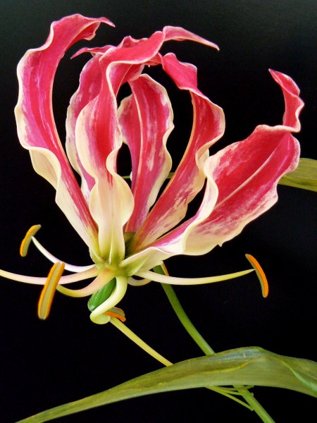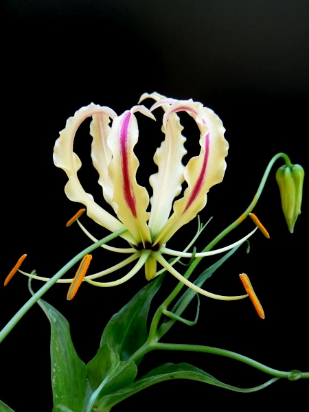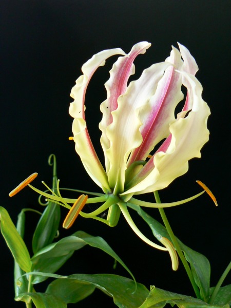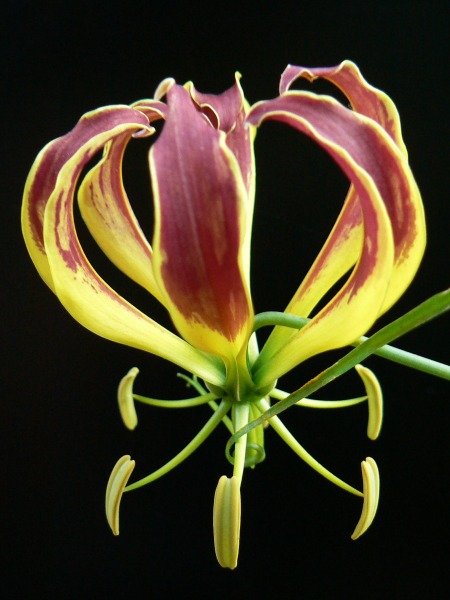 Sandersonia je perfektně zapěstovaná, nikdy jsem neměl tolik květů. Byla s gloriózami od dubna venku? Já se vždycky potýkám s tím, že mi tyhle kytky (gloriózy a litonie) doma strašně vytáhnou a pak kvetou někde u stropu; vyndat je hned na jaře ven jsem se vždycky bál. Asi to příští rok zkusím podle Vás, pane Raabe.