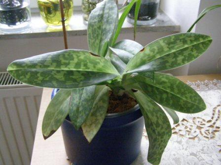 Tlumočím jen co bylo na štítku. Vzhledem k tomu, že jsem ho koupila odkvetlý v Baumaxu, tak nevím jestli je to směrodatné. Má mramorované listy - viz fotka