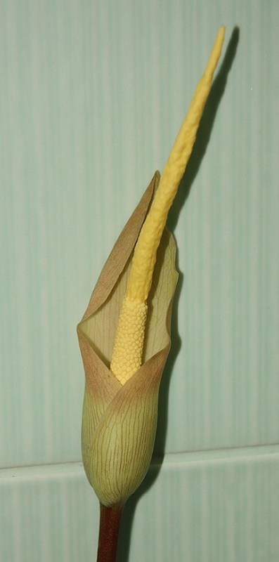 Z jihovýchodní Asie, konkrétně z centrálního Thajska, pochází Amorphophallus atroviridis. Má dlouhou, poměrně tenkou hlízu a pěkný tmavý list, nesený načervenalým řapíkem. Letos se moje kytky (mám pět různých klonů) chovají divně - ani jedna nevyrašila (jak dospělé, tak dceřiné hlízy), ačkoli kvetou jen dvě - je normální, že některé druhy zmijovců vytvoří list až v sezóně následující po té květní. Hlízy jsou zatím v pořádku, jen spí... Tak snad se příští jaro probudí.