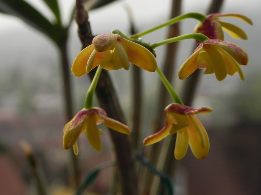 Taky přidám některé nové a některé opakovaně kvetoucí Sigmatostalix je dovezený teď v dubnu přes ,,pokojovky´´ od Ecuagenery i s malými poupaty, některá zaschla a tyto vykvetla. D. gracilicaule bylo poničené něčím na listech tak letos kvete jen 1 pahlíza a i za to jsem ráda, že se rostlina vzpamatovává,D. Berry je první moje kvetení a jen jedna pahlíza , nevěděla jsem jak na něj moc jsem ho týrala chladem a suchem a až teď jsem trochu přišla na to, že to není nutné, tak třeba za rok to bude lepší a Stanhopea asi po měsíci znovu kvete a má ještě jedno poupě a zjistila jsem, že voní i poupě den před otevřením květu.