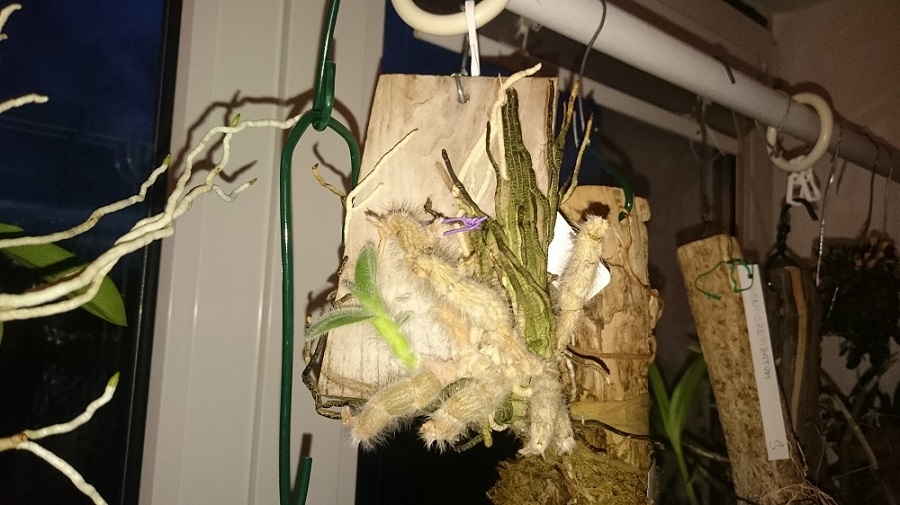 Mám ještě jedno D. parishii a to se probudilo na květ až nyní a přitom již raší nový výhon tak u toho senile co bylo chladněji stále doufám. Někdy začátkem května ho zaliji a uvidím. Třeba čeká na tu vodu kterou nedostalo 6,5 měsíce. Pokud do podzimu nevykvete tak ho budu zimovat v ZZ a nasucho. Jsem také zvědavý jak rychle se po namočení dostane do dobré kondice.