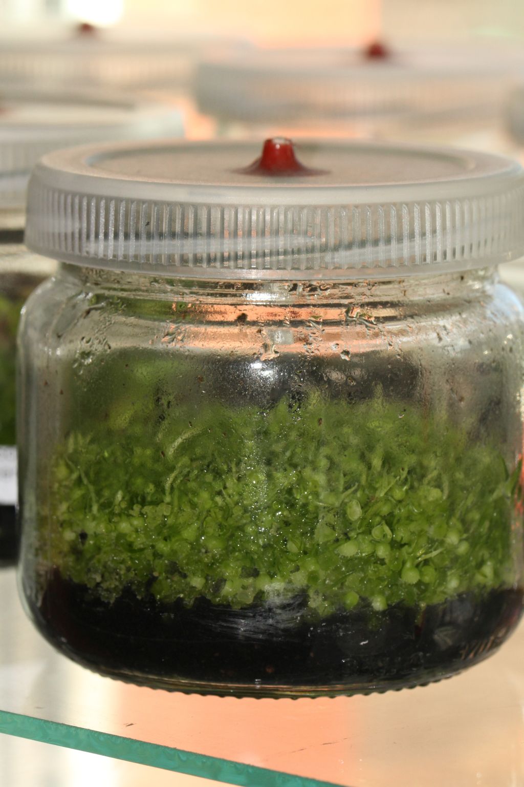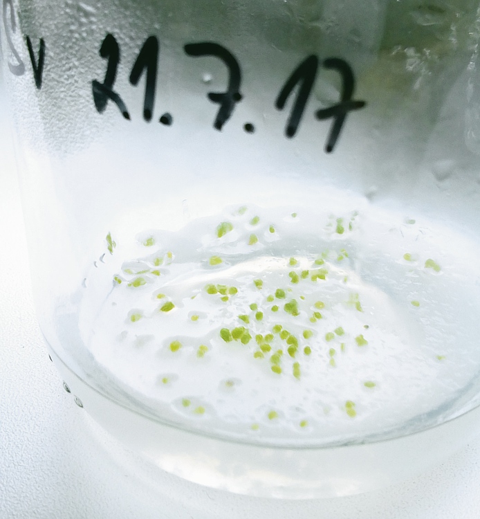 Některé výsevy klíčí neuvěřitelně dobře až nepříjemně masivně. Odeberou se protokormy do dvou tří flašek a zbytek se časem vyhodí. Nechávám to tak dlouho než mám jistotu že přepíchané flašky nejsou kontaminovány.