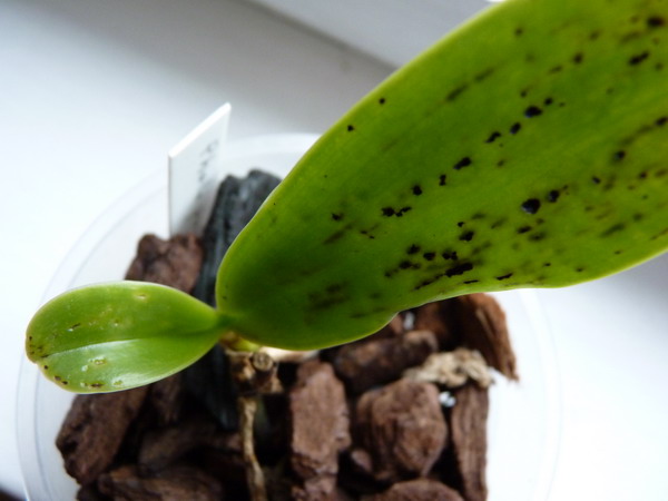 Jen poznamenám,že vitrínu mlžím každý den, vlhkost je tam 80-90% a žádná houba se mi tam neobjevila. Tyhle byly na parapetu, kde je v místnosti možná 50% vlhkost, nepřelévám je a nemůžu se toho zbavit. Prosím tedy zkušené, zda poradí. Na Dendrobiu vyrostl krásný zelený list a za chvíli se to na něm udělalo taky. Ještě poznamenám,že rostliny jsou v karanténě......Moc děkuji Věra