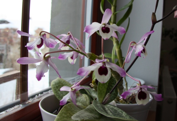 Dostala jsem radu od zkušeného pěstitele, tedy spíše to bylo varování, že při nakvétání cymba nesmí teplota stoupnout nad 15°C, jinak shodí květy i kdyby už byly před rozvitím, tak jsem to úzkozstlivě hlídala.Po rozkvětu se už teplota může lehce zvýšit, ale prý květy moc dlouho nevydrží. Nebudu je přemisťovat