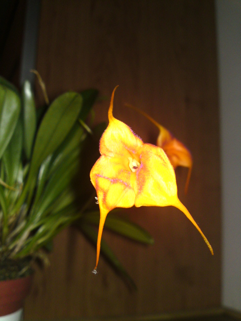 Právě a nedávno kvetoucí. Masdevalia veitchiana x ayabacana jsem si přivezla z Drážďan už s poupětem. Trochu zklamala, čekala jsem větší květ a/nebo postupné opětovné nakvétání.