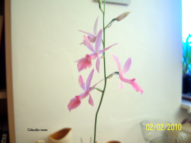 Calanthe rosea, mám ji od prosince, takže zkušenosti ještě žádné, ale jsem ráda, že vykvetla. Barva se špatně fotí, odpovídá ta se světlým pozadím (ale zase není ostrá :oops: )