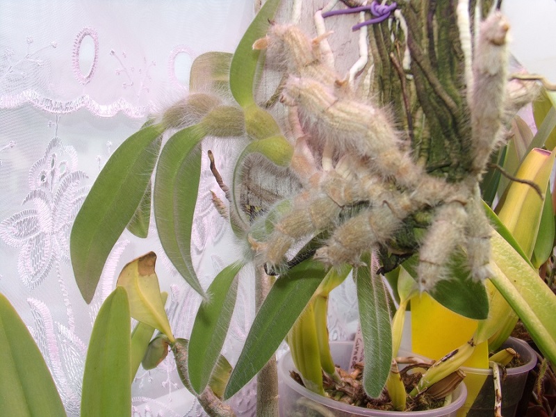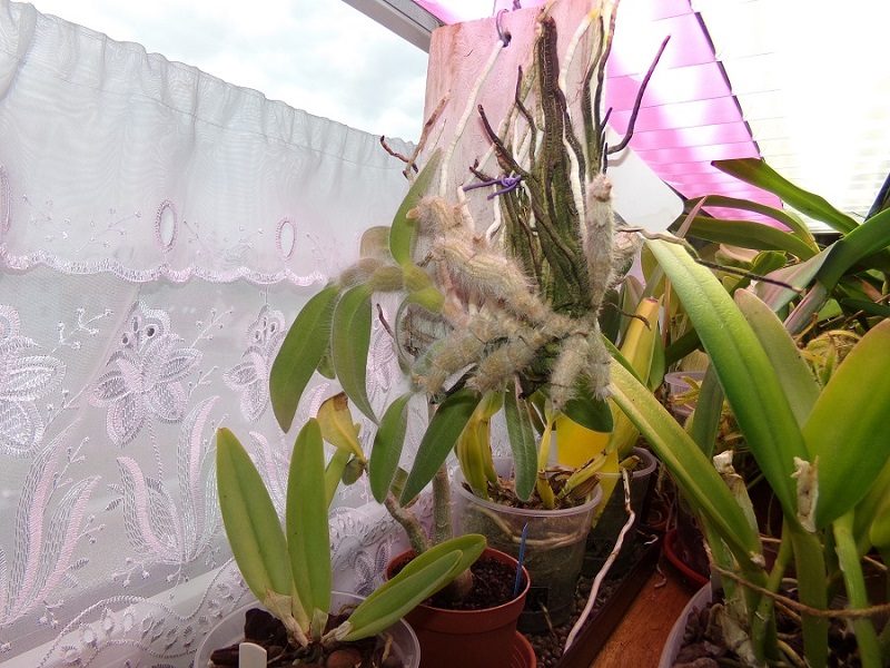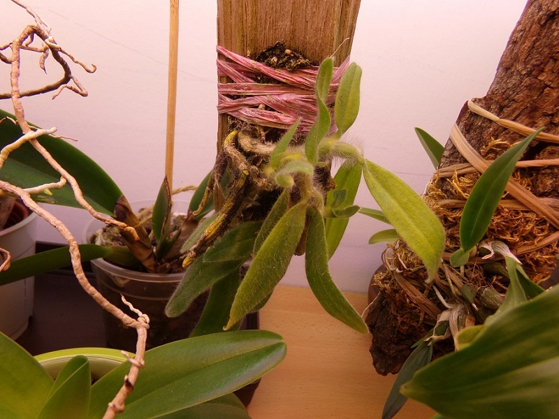 Jediné pozitivum které na něm oproti loňsku vidím je to, že mu narostly nové kořeny. V ZZ kde byl vlhčí vzduch tak kořeny rostly. Venku loni nepřirostl ani jediný kořínek, ale nové pahlízy byly také pěkné, ale byly živené ze starých kořenů-což je jistě špatně.