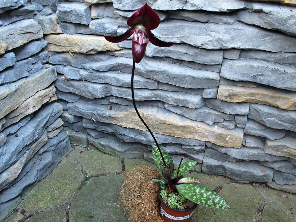je to křížení Paph.(Dragon Wine x Men.Robert Ward) x Paph.(Maudiae x Willie MeGee)pafíčko jsem měla nejprve doma jako teplejší.Pak bylo na zimu v zz s poklesem nočním k 13-14°C.Zatím neproteštuje je teda fakt že jsem si hlídala zálivku protože jednu zimu se kroutilo a protestovalo.