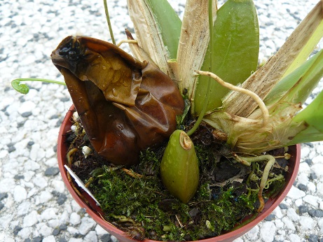 U některých odontoglos je běžné, že staré pahlízy změknou a samovolně vyschnou, aniž by byly napadené hnilobou. Příčinu je třeba hledat u konkrétní rostliny. Zdá se mi, že jde právě o tento případ. Nové výhony u ní vypadají zcela zdravě. Pokud bude příčinou hniloba, tak návod jak postupovat je o příspěvek výše. Ještě bych doplnil, že řeznou ránu je třeba nechat po desinfekci zcela zaschnout.