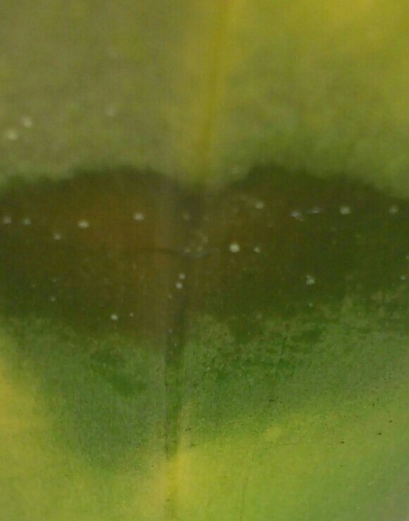 Vypadá to na spálení, někdy se k tomu přidá infekce. Pokud by se to zvětšovalo, list odříznout.
