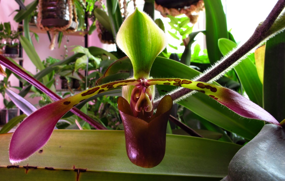Jedna z návštěv u Paphia ty bílý květy mě moc nešly vyfotit njn doufám že názvy rostlin jsou v pořádku.Jinak v poho střevíce bezkonkurenční při pohledu na ně mě chytá lehká orchideářská závist ;)