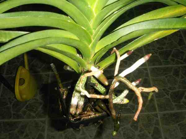 Miro, koukám na ty Vandy, úžasný. Ten skleněnej obal je plný kořenů? Vidím to dobře? Mám Vandu, jen je nějak chudinka. Musela jsem ostříhat kořeny, protože jsem jí je zničila nejspíš silnějším roztokem hypermanganu (zdálo se mi, že chytly nějakou plísňovou chorobu. Teď už rostou nový (posílám obrázek) a tlačej se na stěny v té kulaté váze. Vadí to? Nezloměj se? Dala jsem ji do hranatý, je v ní víc místa. Nemám ji nechat v tom těsnějším prostředí? Ď, Ň.