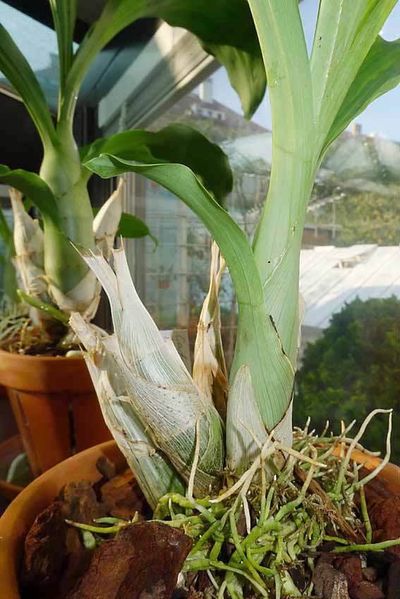 Stanhopea tigrina, která sucho snáší hůře nežli Cataseta si drží loňské kořeny živé až do téměř usušení rostliny kdy i opadají listy a po zálivce se dokáže napít. A myslíte že Catasetum které vydrží daleko více sucha je bude nechávat odumřít?