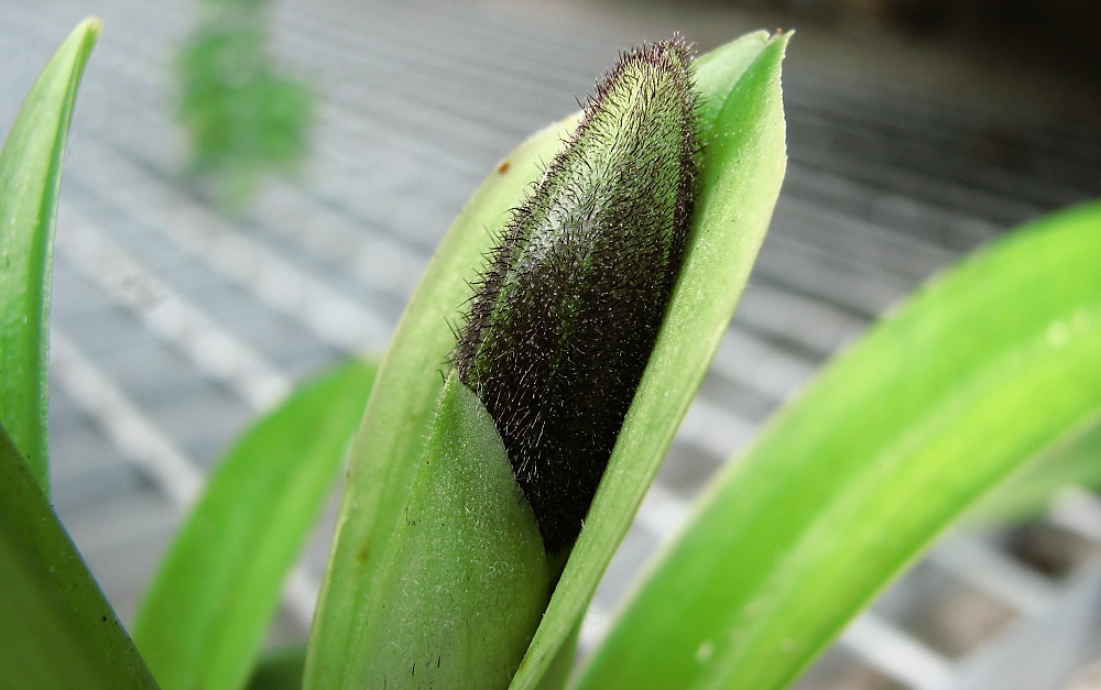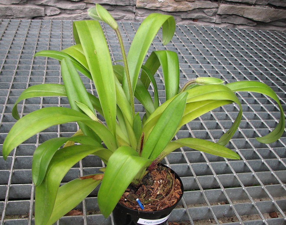 Paph.villosum-4 poupata jedno je ještě mezi listy růžice