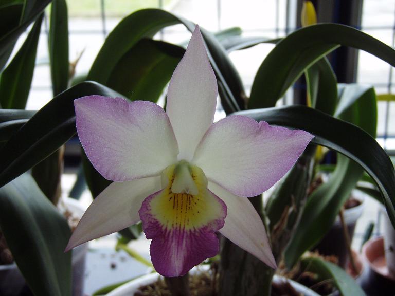 Tak už mi také kvete :-) Není to sice moje zásluha, přišla od p.Mandlíka už s malinkatým zárodkem květního stvolu, ale jako oddělek, který měl jen pár kořínků a musel zakořenit (navíc se cestou samozřejmě vysypal) ... a nevoní.