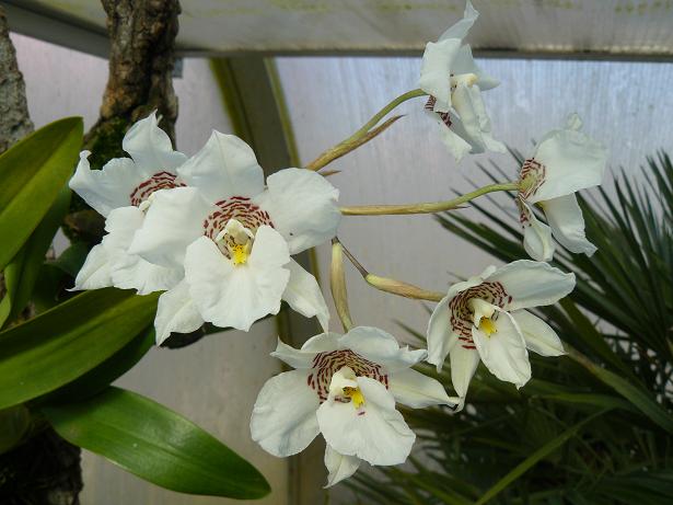 Tak přidám prvně kvetoucí Rhynchostele (Lemboglossum) cervantesii. Stvol začal narůstat již na podzim a pak skoro celý zaschl. Už jsem se obával, že půjde do háje. Ale nedávno se probudil a takhle krásně rozkvetl. Květenství je několikrát větší než celá rostlina.