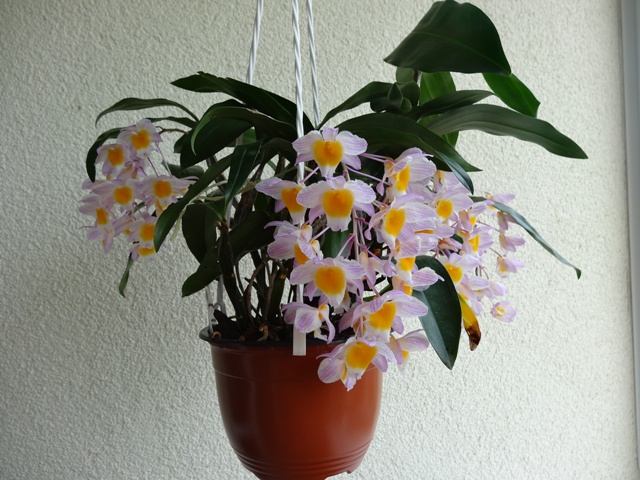 po roce opet rozkvetlo dendrobium thyrsiflorum, stvolu kvete 14, dalsich 10 se zastavilo, mozna jeste polezou az odkvete tech 14. fotky jsou zde, focene od cudliku az po rozkvet http://luludi.rajce.idnes.cz/Dendrobium ... 080862.jpg