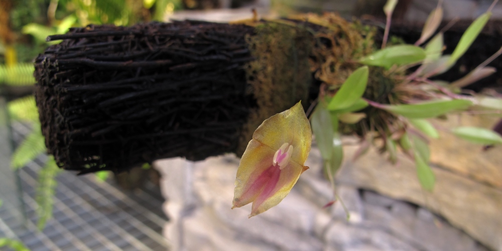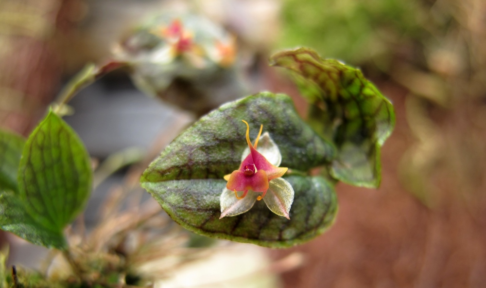 Ještě jeden Lepanthes .Díky zabarvení listu není květ tak výrazný -klidně se přehlédne.