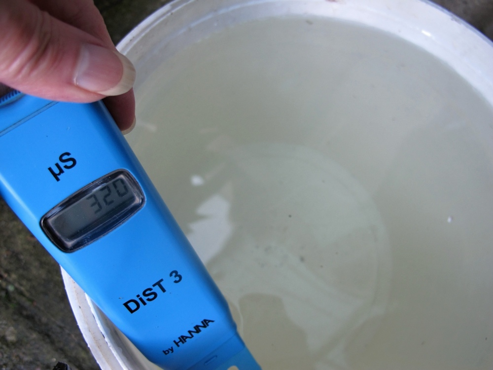 Tak 10litrů vody o hodnotě 19µS + půl odměrky (můj Kristalon má v balení 10ml odměrku) .Vyšla mě hodnota 320µS .Jde o Kristalon květ-plod NPK 15-5-30