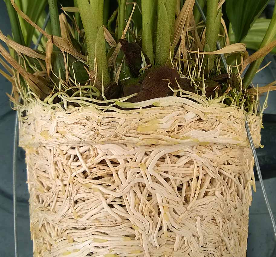 V zálivkové vodě je většinou hnojivo dobře promíchané takže roztok je homogenní. Po postřiku nebo namočení se zejména na špičkách kořenů udělají kapky, které kořen nevstřebá. Tam kde je velamen tak je to spíše film a kořen vodu vstřebá. Na tom konci kde ale velamen není tak kapka spíše pomalu uschne. Než ale uschne tak se koncentrace hnojiva musí mnohonásobně zvýšit. Zrovna tak jako na konci velamenu, který je nasákavý a kam přichází další voda po kořeni a na konci se pouze odpařuje. Nikdy jsem si ale na druhou stranu nevšiml, že by se i při občasném hnojen,í špičky kořenů nějak popálily. Už z tohoto důvodu mi připadá lepší hnojit slabšími koncentracemi a častěji.