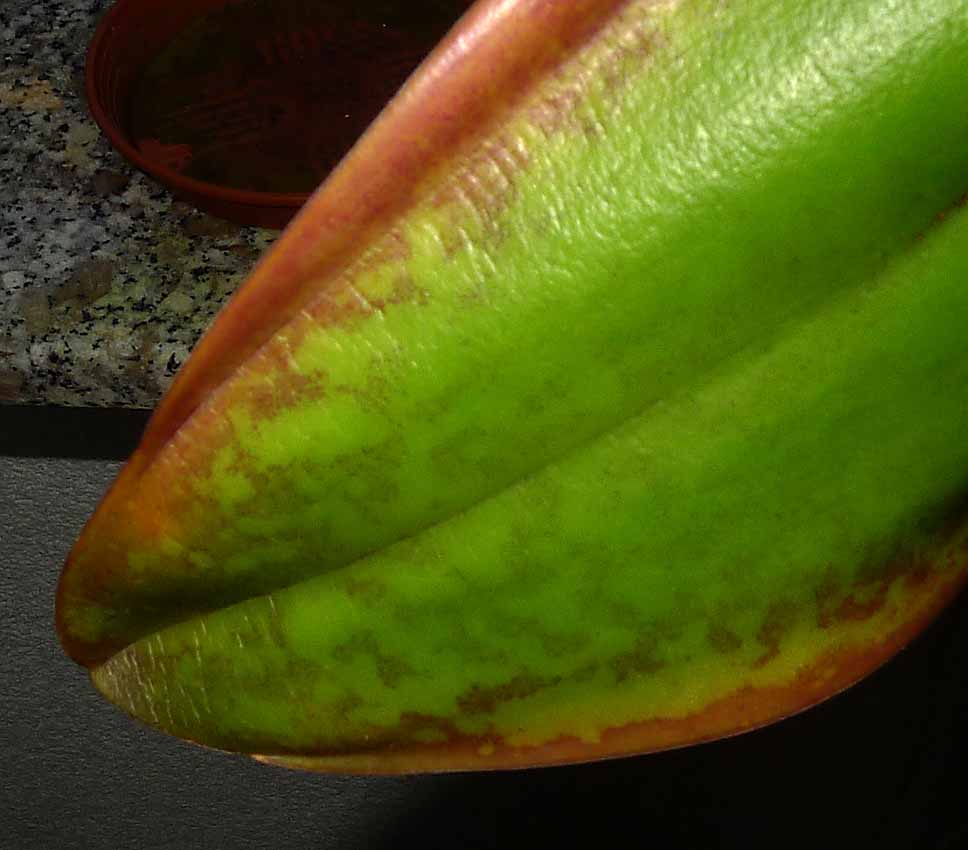 Myslím si, že kdybych nerosil, tak rostlina uschla, takže poškození jednoho listu a nastartování růstu je tou lepší variantou. Musel by jste vidět, co se s ní dělo u mne, aby se to dalo nějak z Vaší strany posoudit