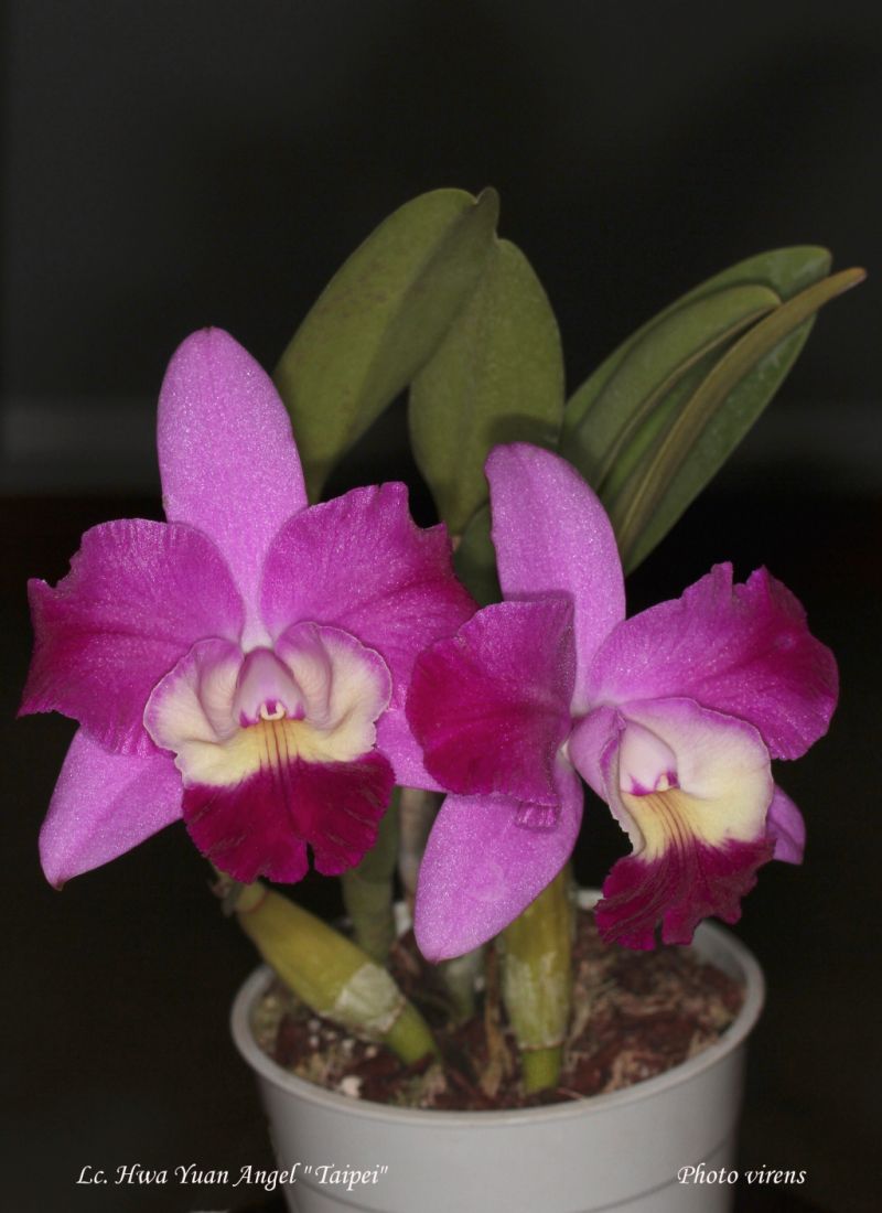 Lc. Hwa Yuan Angel "Taipei" menší Cattleya výška bez květináče 16 cm . Květináč průměr 11cm a internodie rostliny jsou velice krátké a tak se vleze do něj odhadem 15 pahlíz. Pokud v něm kvetou 3-4 pahlízy vypadá to nádherně.