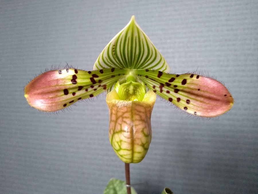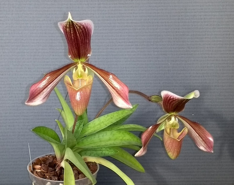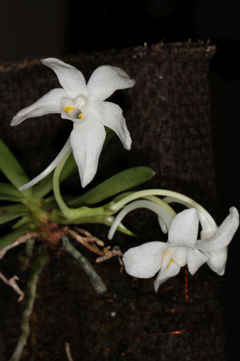 Silně vonící Blc. Qing Ming Beauty. Je sice mírně větší 25cm ale ještě snesitelné. A maličká Amesiella minor . Pravidelně kvete ale jinak choulostivější jak větší formy monticola a philippinensis.