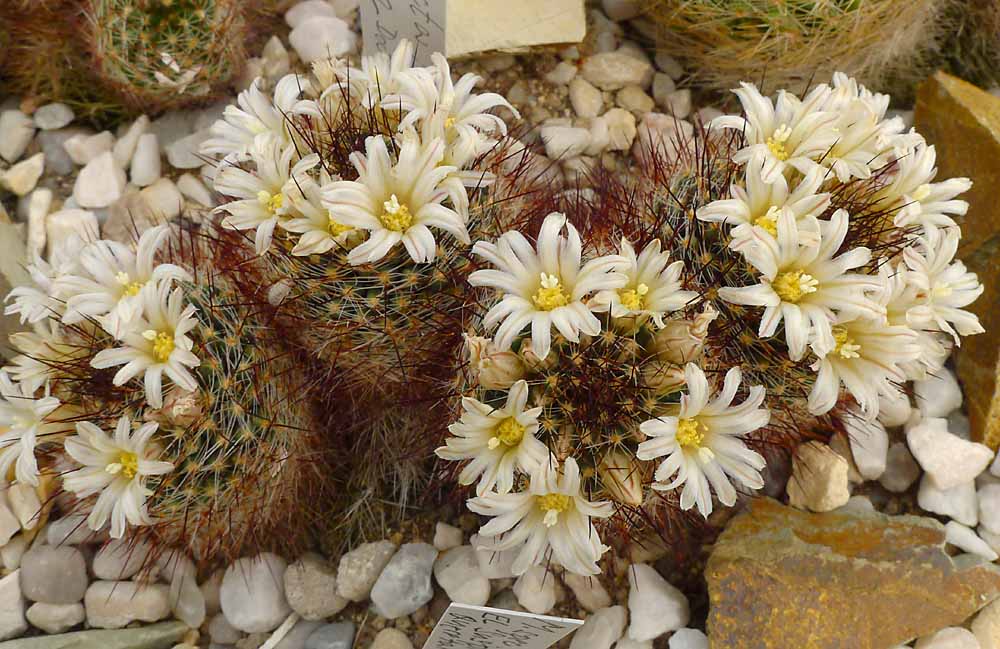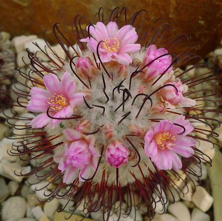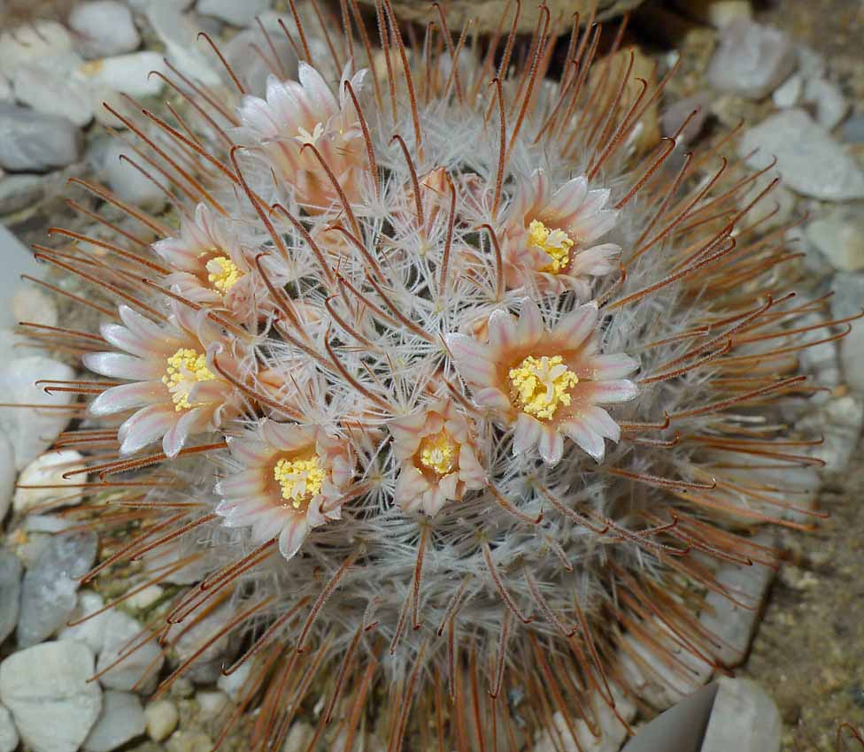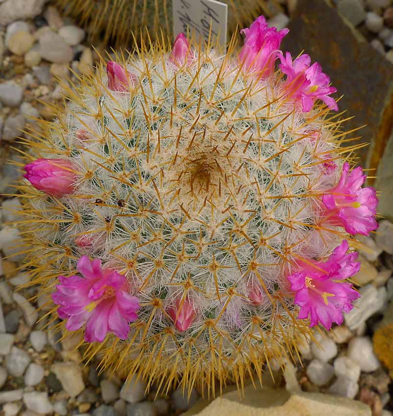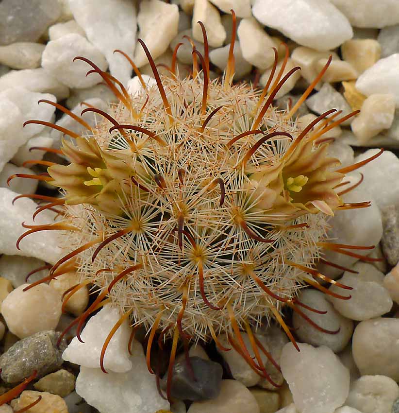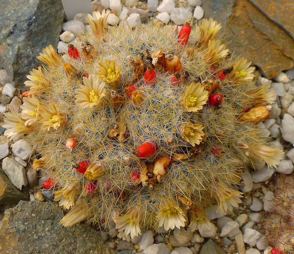 Mamillaria senilis, klasický a žlutě kvetoucí forma. Dříve obrovská vzácnost kterou nikdo neudržel dlouhodobě ve sbírce, dnes se její kultivace daří i jako pravokořenná. Pochází z Mex. nadm. výšky až 3500m, kde je v zimě až -10°C a téměř metr sněhu!
