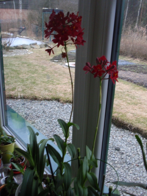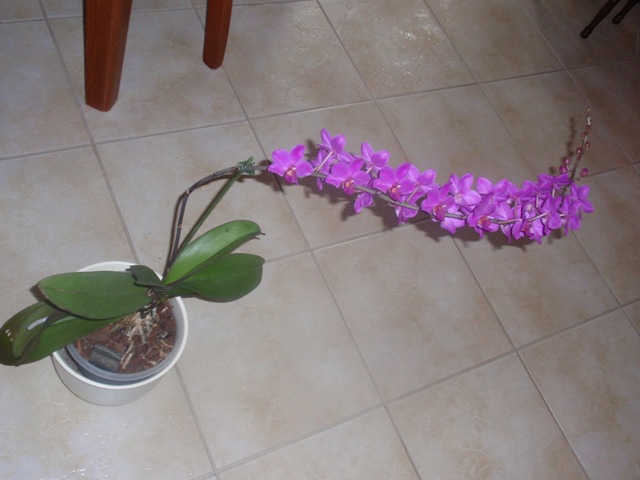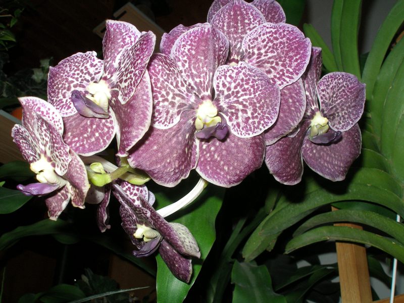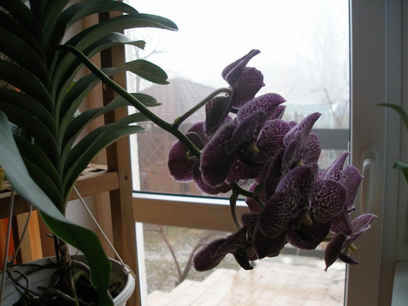 Vanda Trevor Rathbone už rozkvetla celá. 11 květů velkých 10cm a stvol je dlouhý 46cm. Mám obavu, že se vahou zlomí.