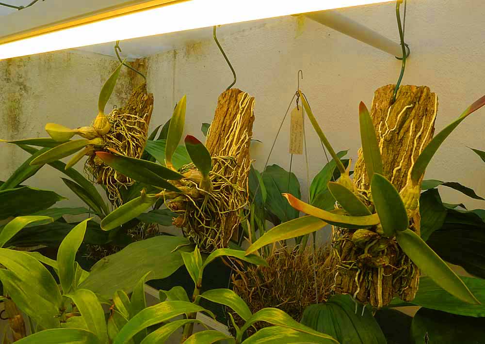 Rostliny mám již více jak dva měsíce na sucho a zatím seschly pouze trochu. Budu se snažit aby byly na sucho až do násady poupat, což myslím hravě zvládnou. Vlastně je mám ve stejných podmínkách jako loni. I to Dendrobium senile mám podobně s tím rozdílem, že visí nad radiátorem v proudu teplejšího a suššího vzduchu. Bohužel teplotu musím volit pro všechny druhy podobnou a když speciosy musí být u zářivek tak mají zároveň vyšší teplotu než třeba Cyrtopodia která stojí na zemi. Doufám, že letos to již klapne, protože ty kytky rostou ok a tak snad když jsou v plné síle tak při těchto šocích musí něco vytlačit :)
