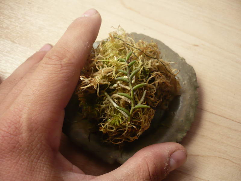 Dobrý den všem, jsem tu nový a forum jsem docela prošel a co jsem potřeboval jsem zatím nenašel, proto se na vás obracím zde. Orchideje pěstuji jen tak okrajově a moc jich nemám. Jelikož se spíše zajímám o pěstování bonsají, zahlédl jsem někde na netu Habenarii radiatu a tím to tak trošku začlo. Nyní se mi do rukou dostala tato rostlina původem zakoupená v Japonsku. Já ji získal od kamaráda ve Švýcarsku a ten ji měl navázanou na klacku pověšenou na stromě, tak jsem si kousek ustříhl. Velikost květu je tak do 0,5cm a barva bílo fialová. Kdyby náhodou někdo věděl jak se tato rostlina jmenuje byl bych vám moc vděčný. Případně nějaký rady na pěstování.