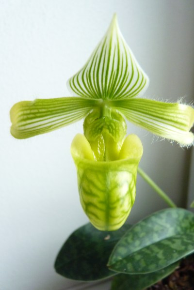 Pěknej Věrko a kde je ten druhý květ :) je zajímavý(a jasný) jak každá rostlina je trochu jiná i listem a nejvíc mě fascinuje počet proužků.Koukni na moje labelum. Zdá se mě že já mám květ kulatější.Ale dobrý dobrý.Ještě sem hodím moje foto nealbína pro porovnání .