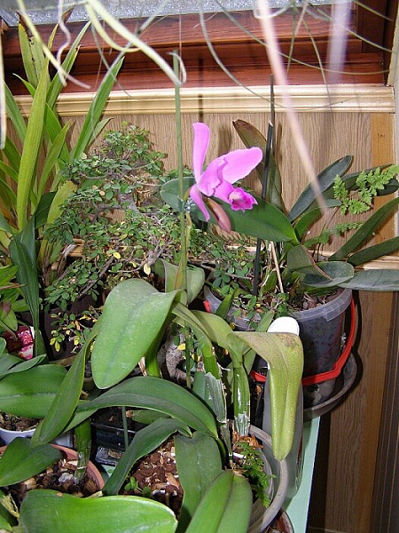 Tak dnes se mi otevřela cattlejka,už ji mám skoro 20 let,jedna z prvních orchidejí,co byla doma.kdysi snad měla i název druhu,nebo křížence,ale to se za ty roky někam vytratilo...je naprosto obyčejná,menší květy,ani nijak extra dlouho nevydrží,ale roste si a kvete a trpělivě snáší mé pokusy a učení se.Už několikrát byla skoro po smrti,ale vždy se vzpamatovala a roste dál.Někdy si říkám,že ta kytka mě musí nenávidět....Ale co,chybami se člověk učí...Letos dostala nový substrát a do něj spolubydlící,kapradiny od Paphia....a opět kořeny okamžitě prolezly substrát a kvete.Kdyby jste někdo věděl,co je to za druh,byl bych moc rád.Díík.