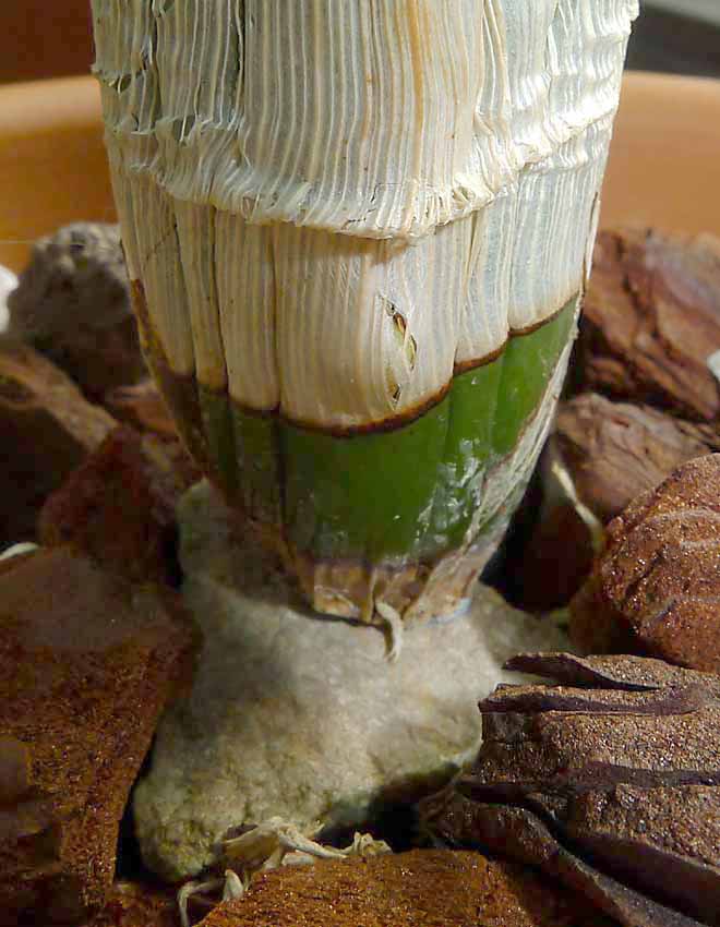 Tak v zimě uhnilá pahlíza začala rašit. Myslím, že čekala na vhodnou kombinaci teploty, světla a rosení. Ani mi nepřipadá, že by stará pahlíza nějak seschla. Tak doufám, že poslouží alespoň k množení.