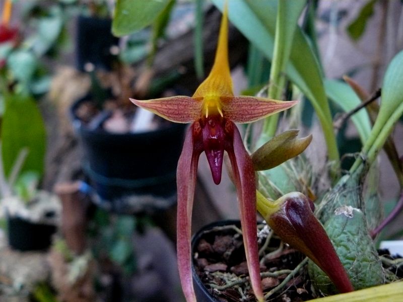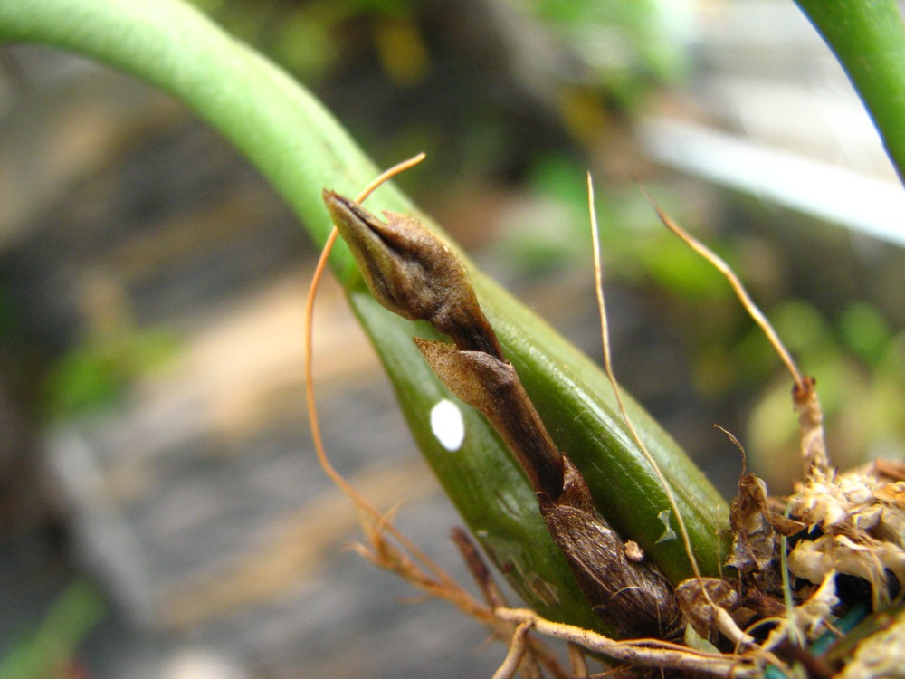 Moje Bulbo bicolor bylo zřejmě ve větším chladnu než se mu líbilo a mám po parádě.Květní výhon uhnil no be be :?Už jsem ho dala nad topení nakonec jako Lepanthes.Jediná utěcha je že roste.