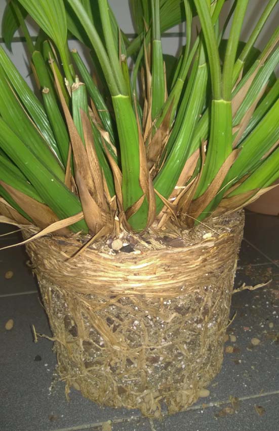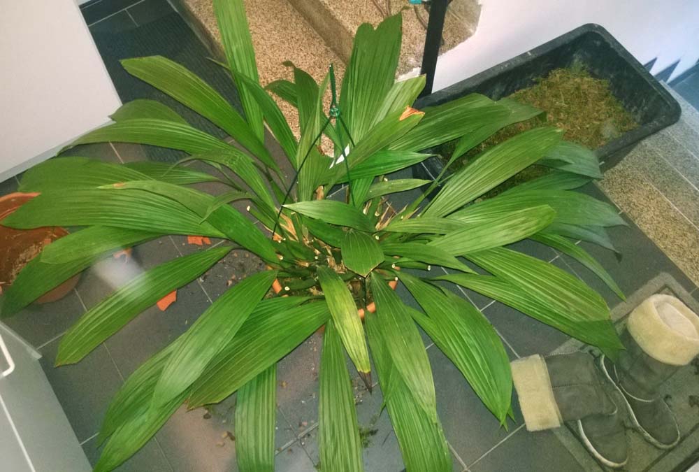 Dnes jsem tu svoji přesazoval i když by to bylo rozumnější až po odkvětu. Z květináče jsem ji dostal až po vystřihání nůžkami na plech. Dveřmi jsem nemohl projít, protože v rozpětí má dost přes metr. Kořeny jsem ale poškodil jen minimálně, takže v bohatosti květů ji to snad neovlivní. Zasadil jsem ji pouze do čistého mechu(toho svého), protože je velmi lehký a vzdušný. Spotřeboval jsem ho čtvrt vaničky a pak šla opět na zimoviště k stanhopejím. Příští rok bych na ní typoval tak 20nových pahlíz. To ji ještě nechám, ale pak ji budu muset rozdělit. Mám dlouhý zubatý kuchyňský nůž a ten na to asi bude optimální. Již jsem z ní dával část do zámeckého skleníku na Konopišti a vůbec jsem to nemohl odříznout.