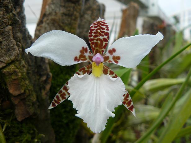 Rozkvetlo Rhynchostele ehrenbergii. Květ je k nerozeznání od rossii, ale rostlina je mnohem menší.
