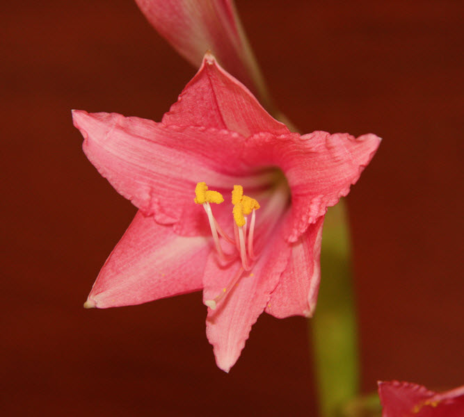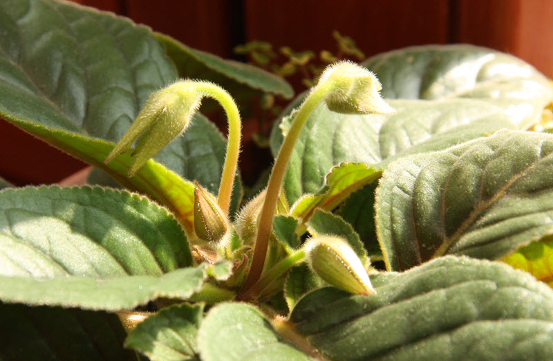 Nakonec ještě něco z Jižní Ameriky: začínají kvést hybridní i botanické siningie; ty první zastupuje tmavě fialový kříženec S. speciosa, dost podobný stanovištní formě 'Diego', používané hojně ke křížení v osmdesátých letech minulého století. Tenhle hybrídek má i pěkné listy, temně zelené s výrazně světlou, skoro bílou žilnatinou. Z botanických by tu byla zářivě oranžová, drobnokvětá S. insularis - polní číslo "MP" značí, že semena sbíral známý brazilský dodavatel Mauro Peixoto. Nakonec ještě pohled na poupata přírodní světlé formy (snad) S. speciosa, sbírané na jihovýchodním pobřeží Brazílie. Kolekci pro dnešek uzavírá celkem pěkný, malinově zbarvený malý hybrid hvězdníku 'Benizuru', křížený v Japonsku.