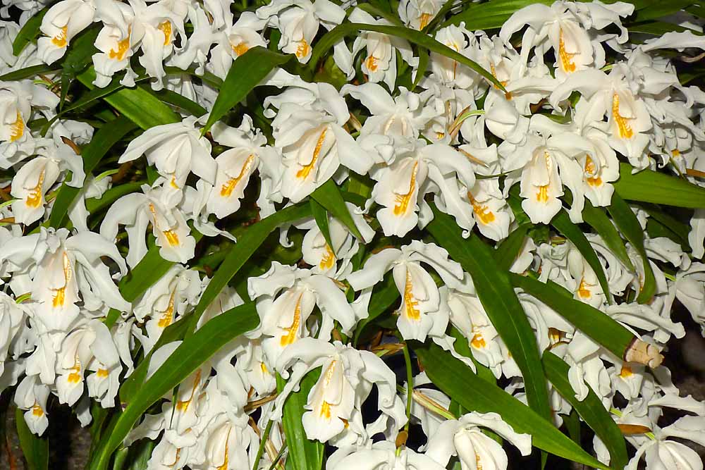 Coelogyne cristata. Snaží se na sebe upoutat pozornost.