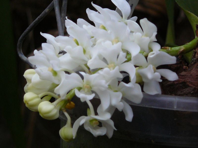 Není to úplně práve kvete, spíš právě odkvetla :lol: Info o tom mém hybridku Epidendrum prismatocarpum x Barkeria spectabilis. Dneska odpadl poslední květ, takže kvetla skoro dva měsíce - rozkvetla 15. 11. 2011 :-)