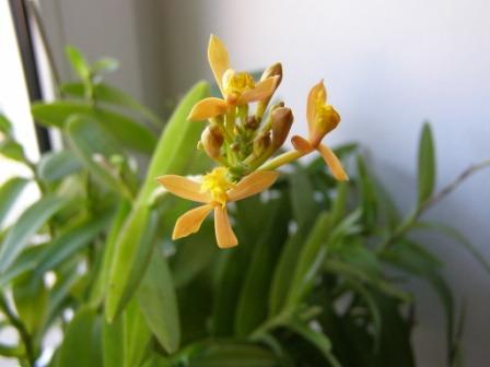 rozkvetlo epidendrum....no rozkvetlo,ono spíš nikdy nepřestalo kvést,jen přes zimu omezilo počet poupat,teď opět nasadilo další,nejsou to sice žádní obři,ale při pohledu zblízka...paráda.