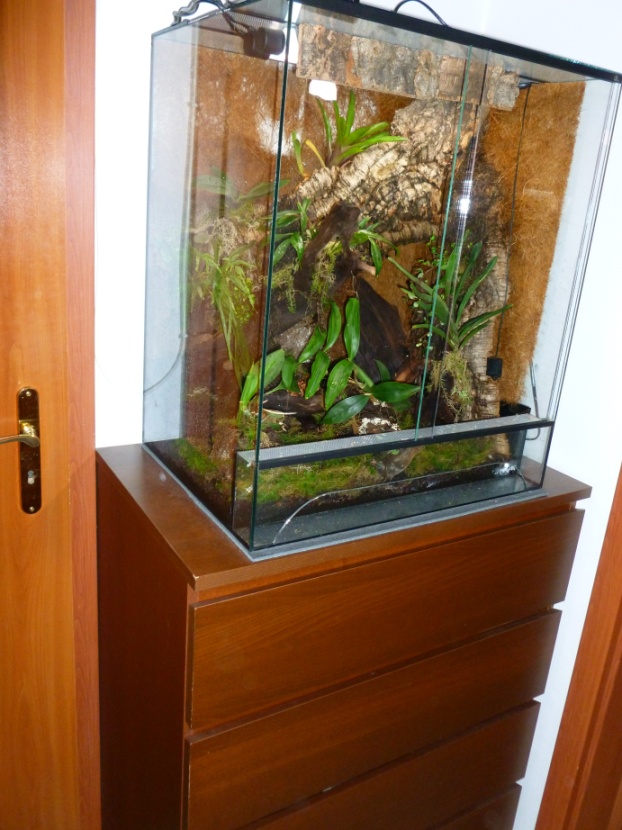 Proběhly menší změny, spíš pro lepší pocit, řekla bych - přidali jsme zářivky s červeným spektrem,občas jsme nějakou rostlinku přesunuli víc nebo míň na světlo, víc obalili nebo naopak obnažili kořeny...Každý den narosíme a zatím bohužel nevětráme - větráčky budou potřeba. Hlavně hlavy máme ve vitríně pořád stejně často, možná i častěji, protože už jsou vidět pokroky, rostlinky se rozrůstají a pořád je co sledovat...teď s odhalením šnečků máme i o noční zábavu postaráno
