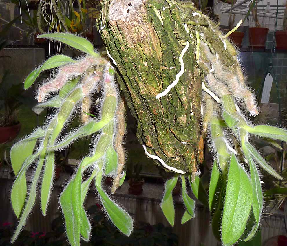 Borová kůra jako podklad se pro D. senile neosvědčila, protože se rozpadá po nějaké době po vrstvách. To menší Dendrobium senile jsem tudíž přesadil tak, že jsem ho odloupl s dvěma vrstvami kůry aby se nepoškodily kořeny a přilepil jsem ho na větší korek. Tak jak jsem popisoval ve vlákně navazování orchidejí. Doufám, že ho to neovlivní v kvetení. O ty 3 květy bych nerad přišel :) . Myslím, že na tom korku s mechem okolo i lépe poroste než na holé kůře.