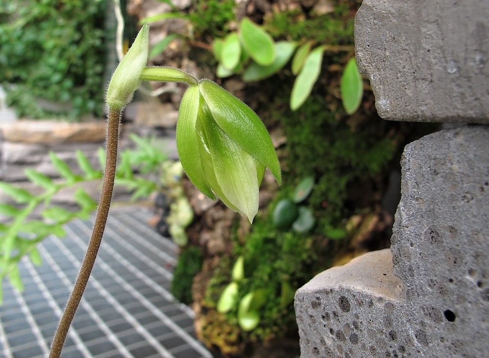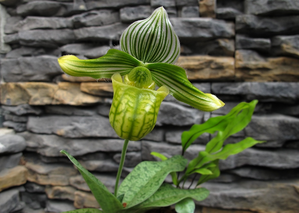 DALŠÍ je na řadě teda doufám -je Paph.esquirolei var chiuvanum.V ten moment co jsem už chtěla nastřihnout květní puk samo to prasklo a kouká na mě zatím zelené poupě.