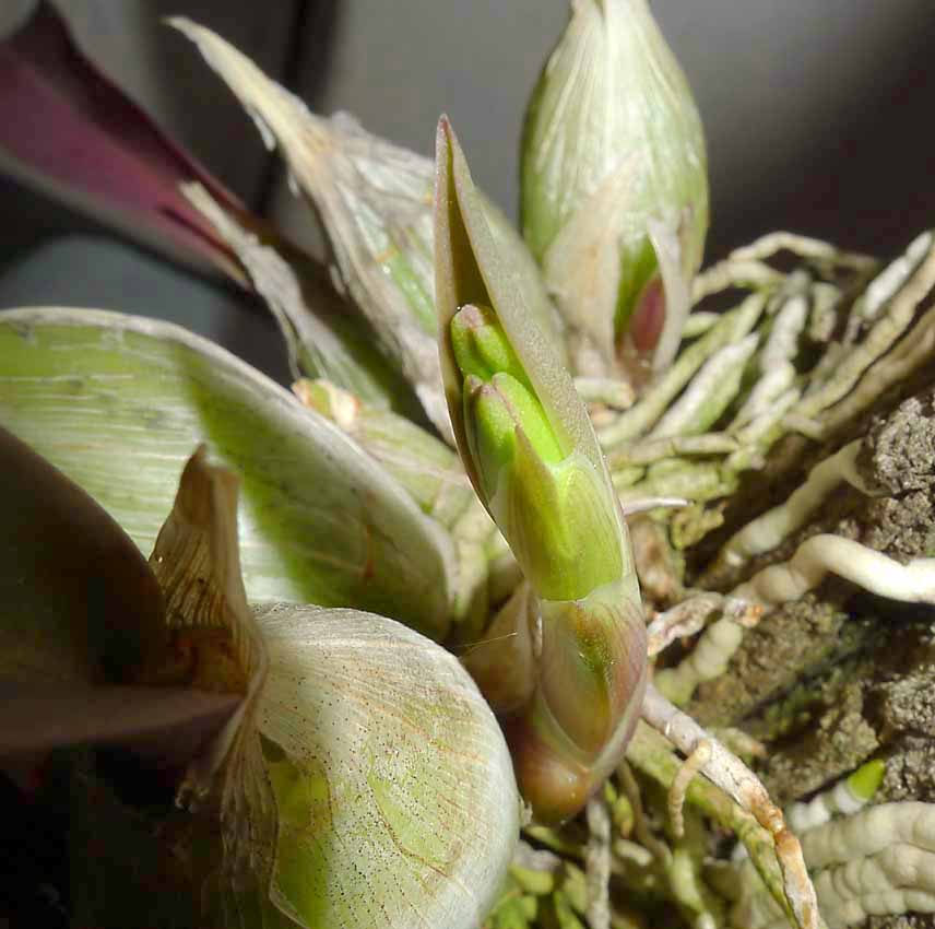 Tak na největší L. speciose vyrostla tři poupata. Celkem na ní raší ale 10 nových výhonů. V některých jsou vidět další poupata, ale nějak zatím není jisté že se vyklubou a budou z nich květy. Na imp. vzorku z Michoacanu se otevřel list a klubou se dvě poupata. Ta by měla mít květy nejfialovější i včetně pysku. Alespoň v Mex. to tak vypadalo. Zatím se to jeví docela slibně.