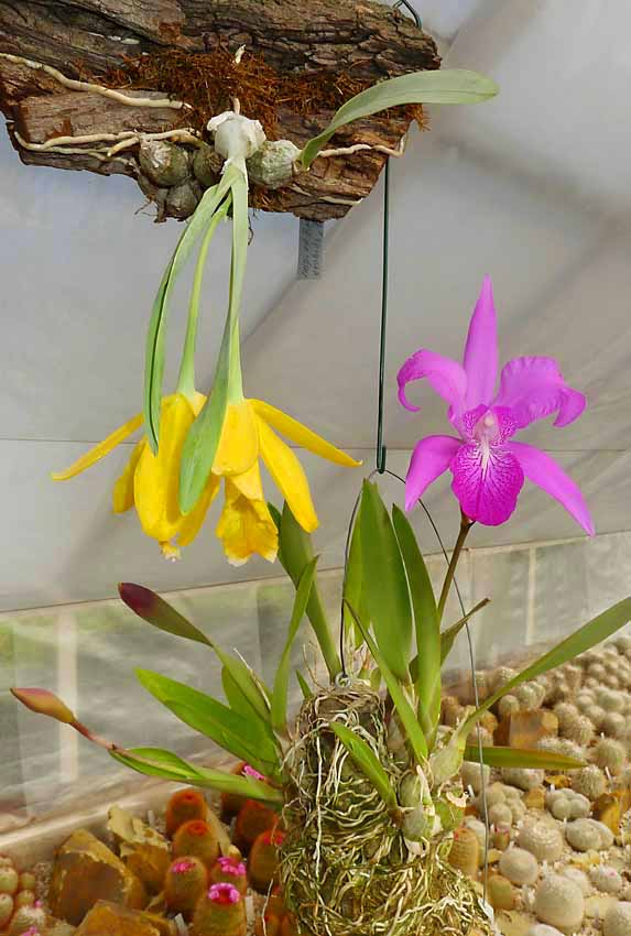Tak konečně holka vykvetla prvním květem. Ve Wikipedii jsem přečetl jak intenzivně voní ale já necítím vůbec nic. Musel jsem si otestovat nos a tak jsem vedle pověsil E. citrinu která stále ještě kvete a vůně od ní byla intenzivní. Ani ta barevná kombinace těchto dvou Mexických skvostů nevypadá úplně zle. Navíc v kaktusovém skleníku už si připadám skoro jako na lokalitě