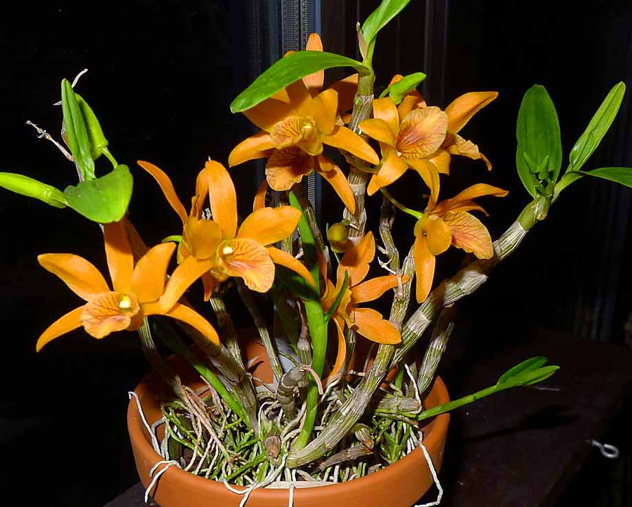 Mě nyní rozkvetlo Dendrobium Stardust, před lety koupené v Kauflandu. Tenkráte mělo klacky více jak 40 cm dlouhé a hodně keikovalo. Nyní málo živené a zalévané má klacky pouze 20cm a je to taková bonsaj sotva přeživší. Přestalo keikovat. Líbí se mi skoro více nežli tenkráte ale na kšeft by bylo málo výnosné
