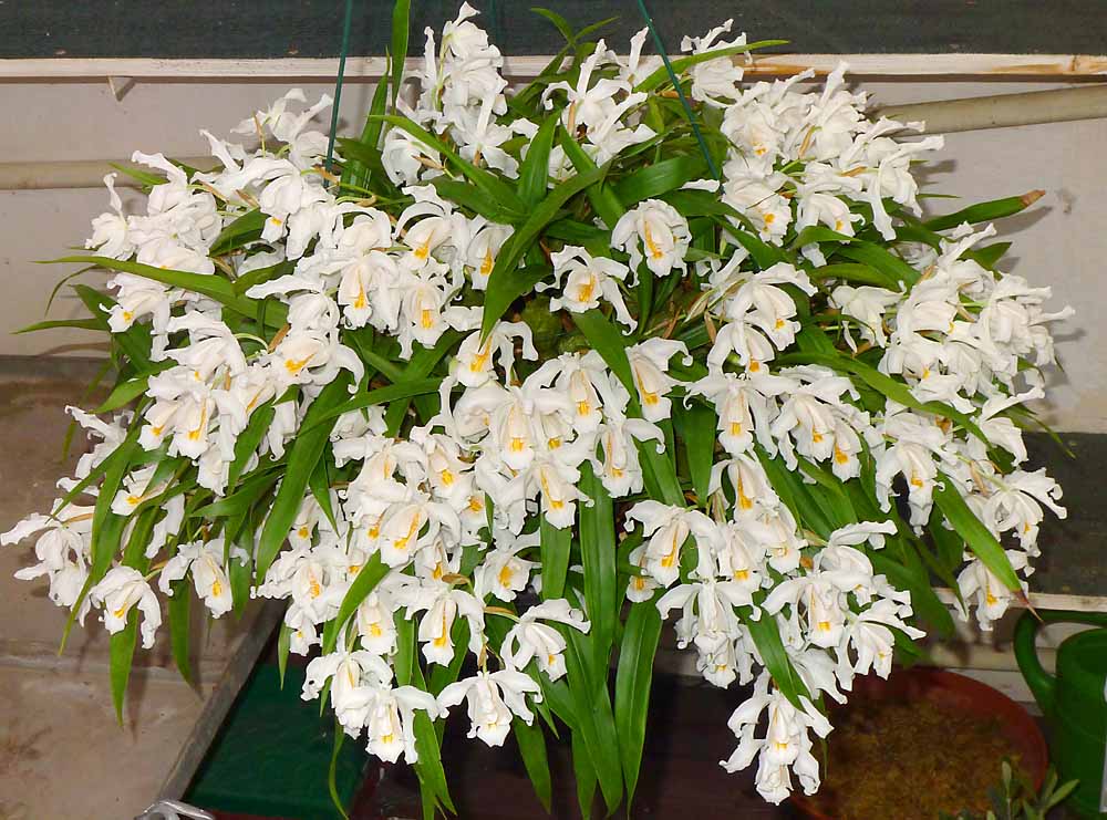Tak nakonec rozkvetla Coelogyne cristata celá a vypadá to, že ještě nějaký čas pokvete. Kdysi jsem četl že uříznuté květy rychle zvadnou. Na rostlině ale kvetou podle teploty i tři týdny. Zatím neuvadlo ani první květenství.