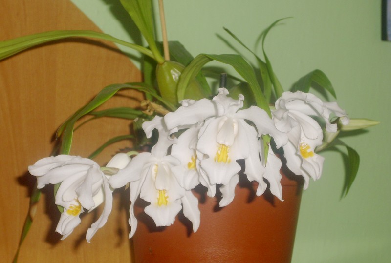 Od některých orchidejí mám už veliké trsy a stále řeším dilema, jestli je dát pryč a nechat si pouze malou část a uvolnit si tak místo pro něco jiného a nebo nechat a pěstovat do většího trsu. Tenhle druh ale pěstuji po většinu roku venku a v zimě jde do kaktusového skleníku. V ZZ je pouze v době kvetení. Navíc bez přesazení vydrží ještě tak minimálně dva roky. Pak budou pahlízy viset i okolo mísy a kvetení bude ještě zajímavější. Letos mne svou neobvyklou krásou přesvědčila, že si ji nechám ještě dále.